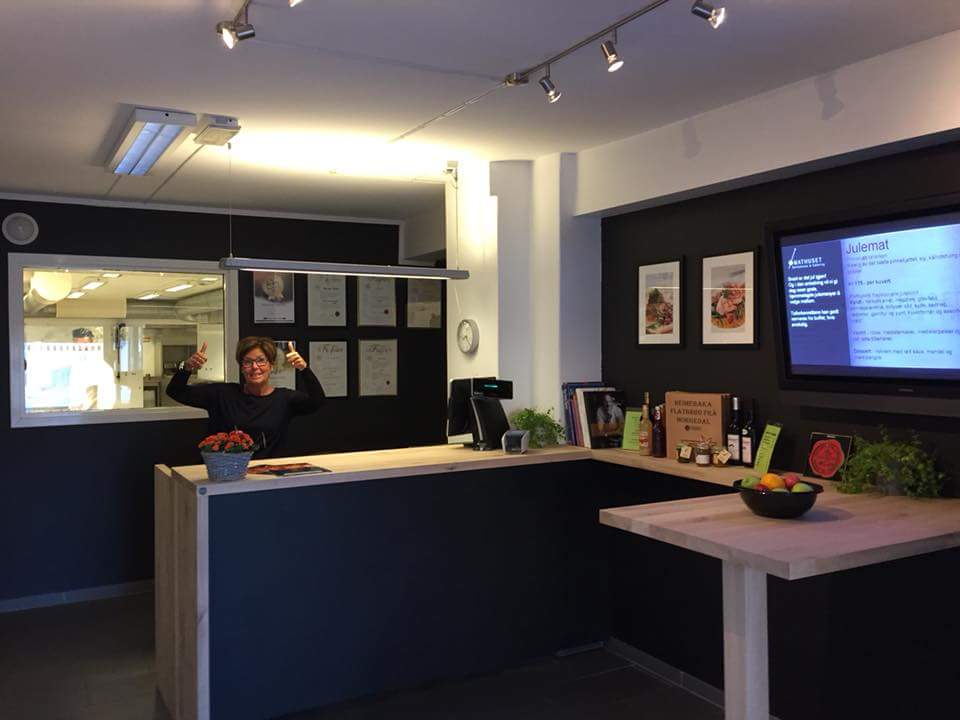 Har fått den gleden av å bygge ny disk og kundemottak for cateringfirmaet Mathuset i Skien. Her har vi valgt å bruke villeik for å