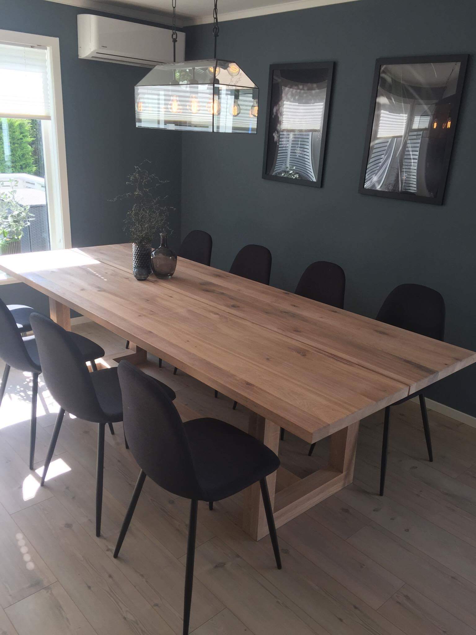 Vi har gleden av å nå kunne tilby dette eksklusive og stilrene spisebordet i flott massiv villeik. Bordet kan leveres i mål opptil 1*3m og
